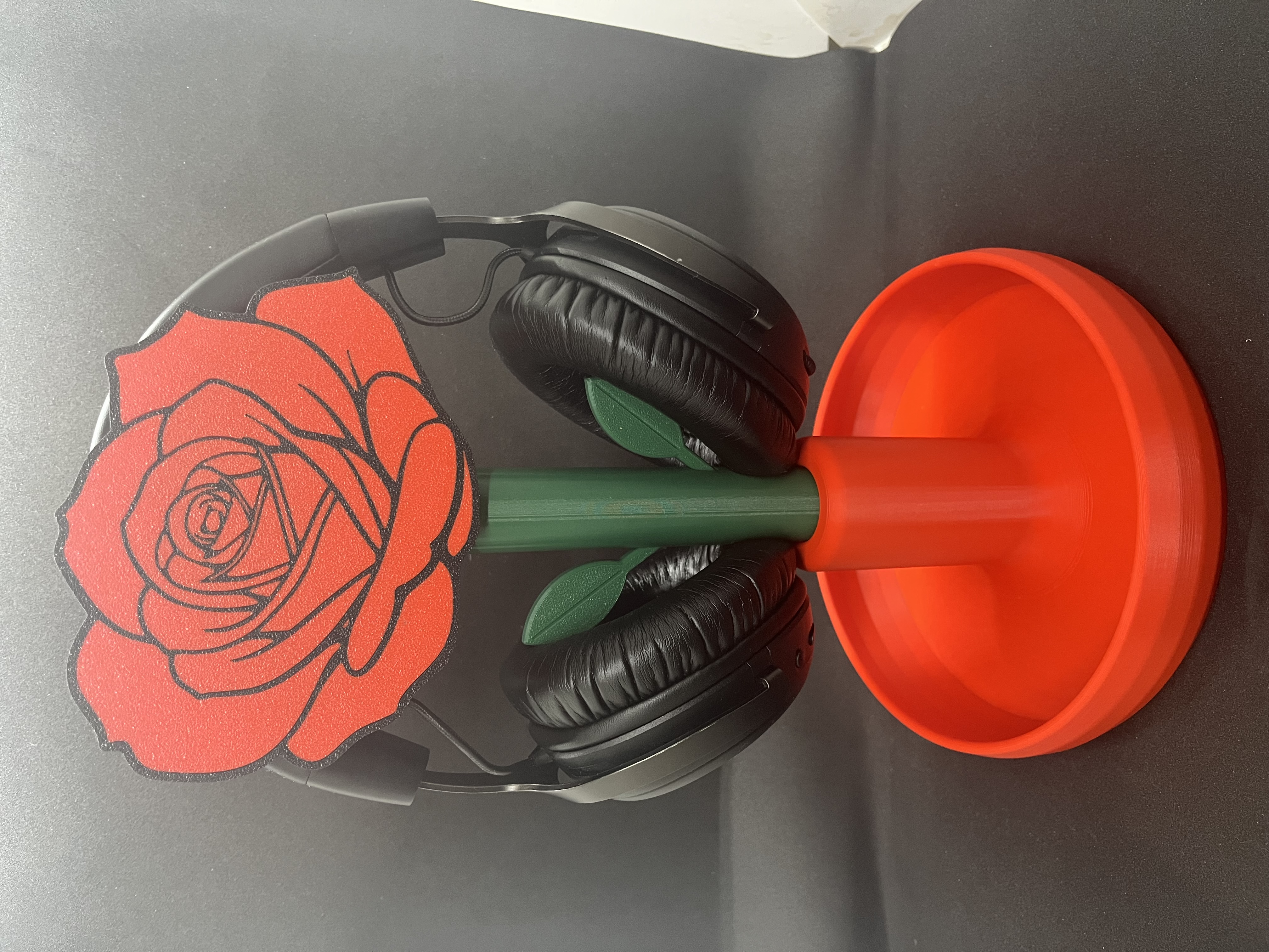 Kırmızı Gül Çiçeği Kulaklık Tutucu Stand - Yayıncı Aksesuarı
