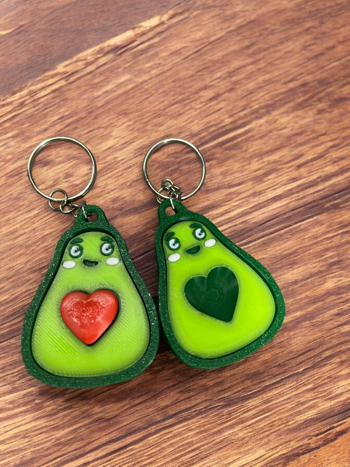 Bir kalpli bir kalpsiz olmak üzere iki adet anahtarlık gönderilecektir.; Bu tatlı çift anahtarlığı, birbirini tamamlayan iki avokado yarısını bir araya getiriyor.; Her bir parçada detaylı işlenmiş avokado çekirdeği ve sevimli yüz ifadeleri bulunuyor, bu da onları birbirine uyumlu hale getiriyor.; İki parçayı birleştirdiğinizde, ortaya sevimli bir avokado şekli çıkıyor.; Bu anahtarlık, hem kendiniz hem de sevdiğiniz biri için harika bir hediye olabilir.; Özellikle çiftler için mükemmel bir tercih olan bu tasarım, taşıması kolay ve dayanıklı bir 3D baskı ürünü olarak sunuluyor.; Kullandığınızda her zaman yanınızda taşıyabileceğiniz sevimli bir hatıra olacak.